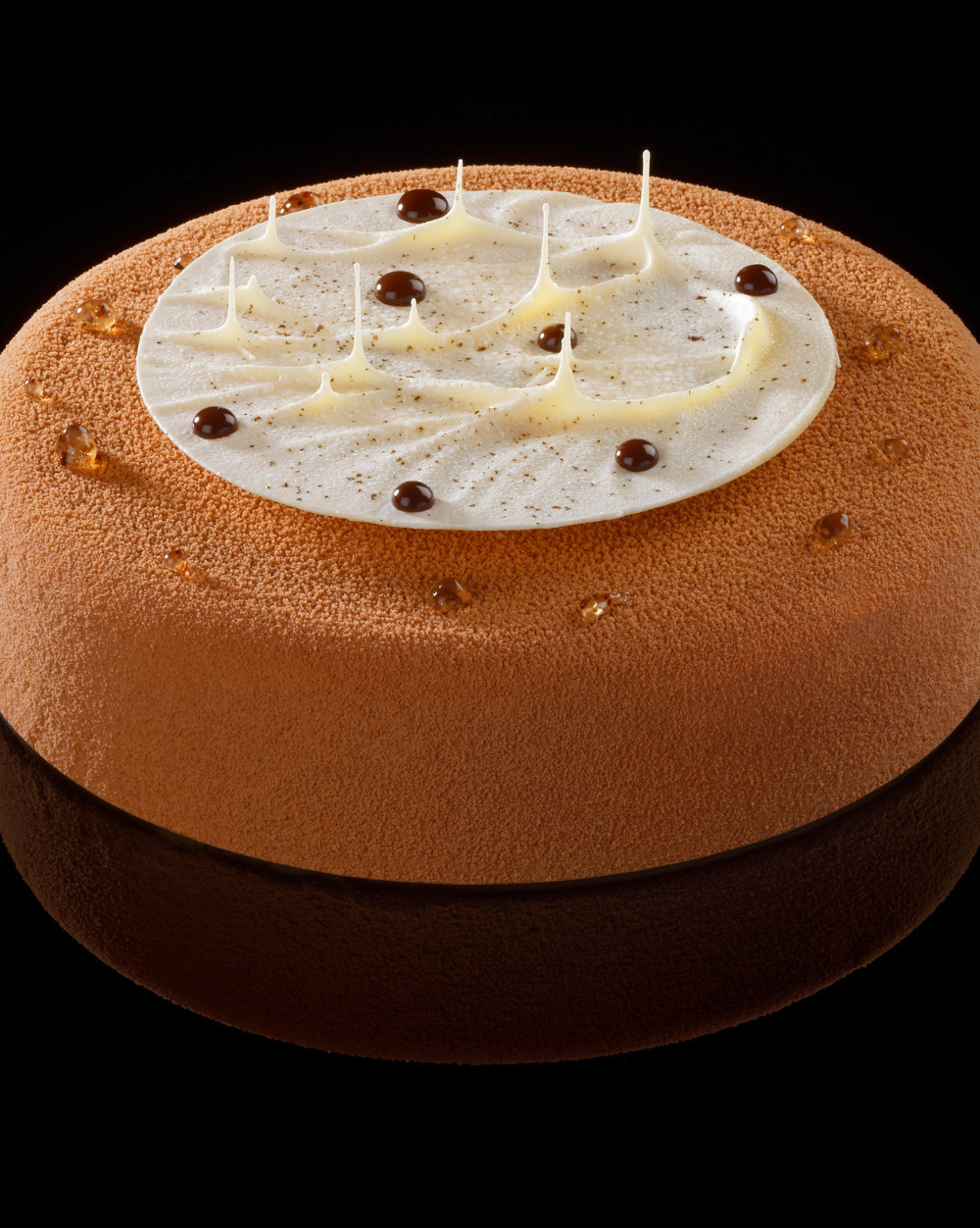 Croustillant chocolat noir, biscuit fondant au chocolat, crémeux vanille et une mousse chocolat lait