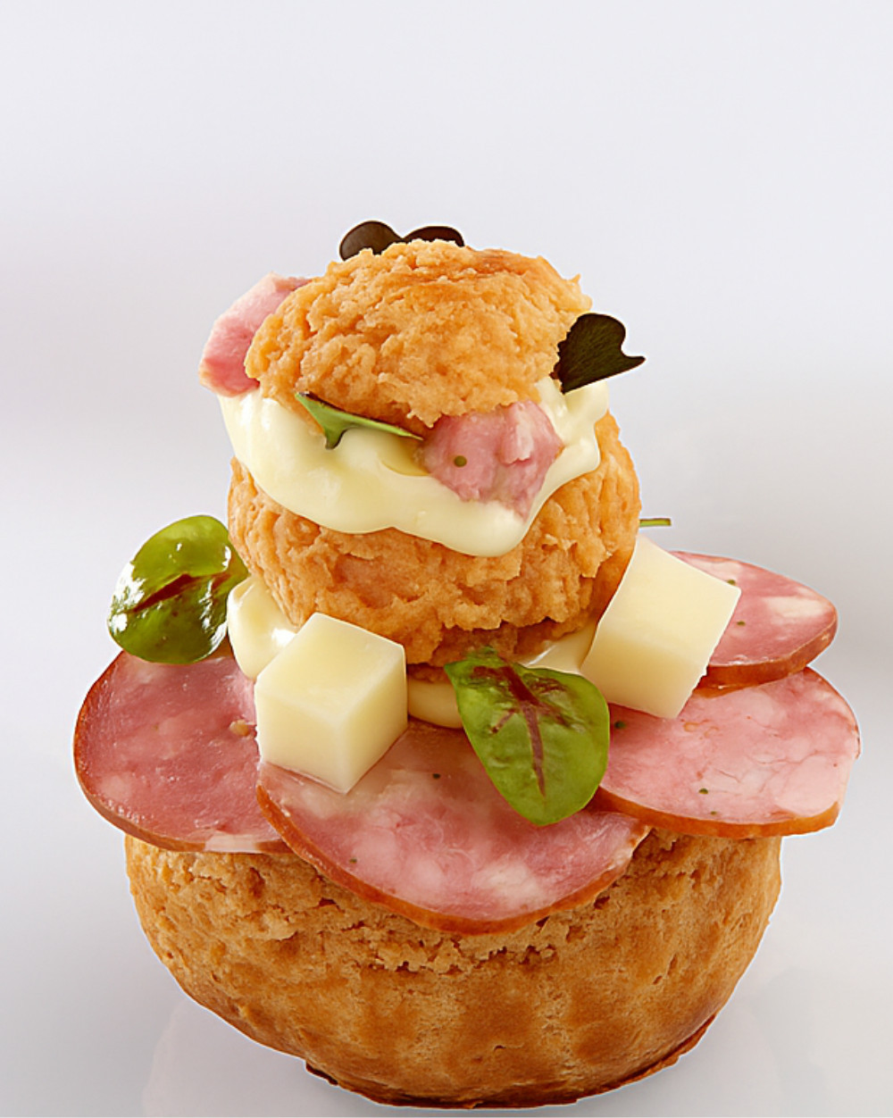 d'un chou, d'un crémeux de lentilles, d'une crème de comté et des écailles de Montbéliard