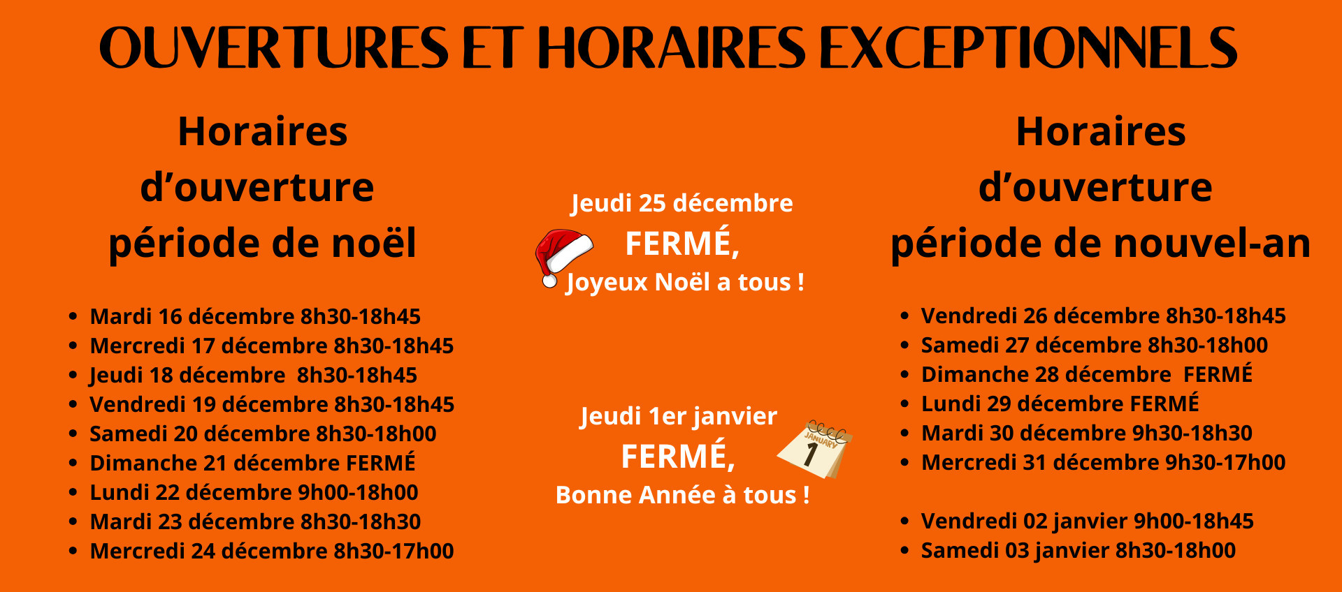 Fêtes de fin d'année 2025 - 2026